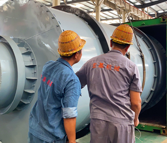 我公司生產(chǎn)的固、危廢回轉(zhuǎn)窯日處理工業(yè)廢棄物規(guī)格型號根據(jù)有十一個(gè)產(chǎn)品,筒體直徑X長度在?2.2×9m-?4.5×16m之間,轉(zhuǎn)速0.05-2r/min,配套主電機(jī)功率18.5KW-55KW,煅燒溫度850-1200度,能實(shí)現(xiàn)20-100t/d固、危廢無害化、減量化、資源化焚燒。